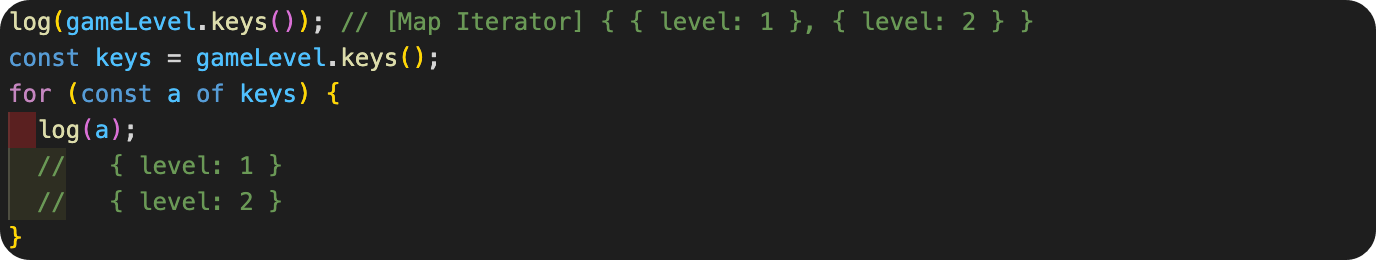 map.keys() : 모든 key 요소를 반환한다. // for of를 통해 각 요소에 접근가능하다.